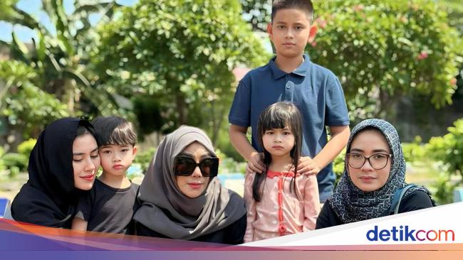 Dilihat pada Sabtu (16/12/2023) Syahnaz Sadiqah bersama anak-anaknya dan Amy Qanita nyekar ke makam ibunda Jeje.